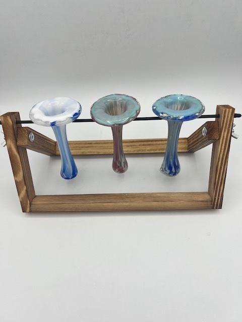 These lovely bud vases can hang with the included chain or stand by themselves.
